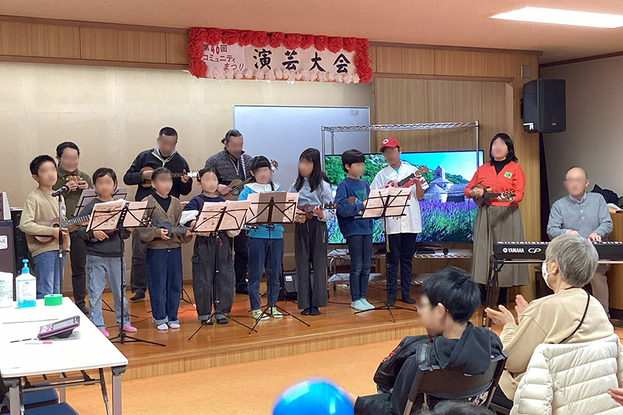 本活動は、三鷹市社会福祉協議会及び地域の高齢者福祉施設・デイサービスと連携し、児童がウクレレで文部省唱歌を弾き語りながら訪問演奏を行い、音楽を通じて地域高齢者とふれあい、世代間交流を深めることを目的とした地域貢献活動である。演奏後には必ず高齢者と児童との対話や交流の時間を設けており、音楽が心の距離を縮める力を実感できる内容になっている。懐かしい唱歌に耳を傾け、子どもたちの演奏に自然と微笑みがこぼれるそのひとときは、単なる慰問にとどまらない深いつながりを生んでいる。