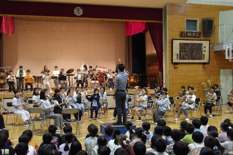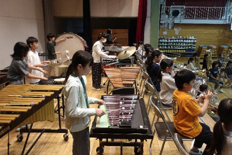 本楽団では主指導を行う音楽科教員に加え部活動指導員や各パート講師、保護者会が連携し、専門的・継続的な支援を行っています。校内外での演奏会やコンクール、地域行事への参加を通して練習の成果を披露し、責任感や達成感を味わい、心を一つにして演奏する経験を積んでいます。これまで数多くのコンクールで高い評価を受け、地域の音楽文化の振興にも貢献してきました。その成果の一端として、今年度も全日本小学生バンドフェスティバルにて金賞を、日本管楽合奏コンテスト全国大会にて最優秀グランプリ賞及び文部科学大臣賞をいただくことができました。