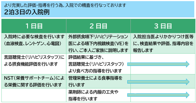 • 嚥下機能評価目的での入院ですので、基本的にはその他の症状や疾患での受診はできません。